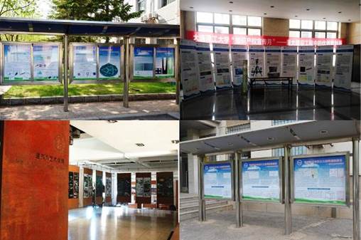 盘锦校区文法学院知识产权专业本科生针对本专业的发展动态、《国家知识产权战略纲要》和校区专利成果等内容制作了展示海报,悬挂在盘锦校区风雨长廊内的宣传栏中,供校区师生参观学习。